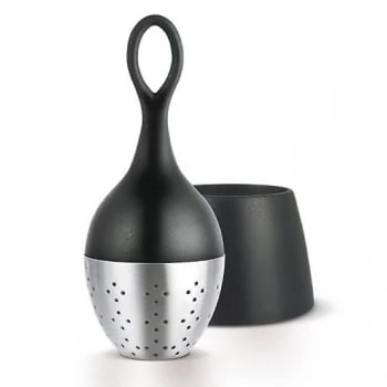 Boule à thé avec support inclus faisant office d’égouttoir pour ne pas salir la table après infusion. Facile à ouvrir et remplir. Va au lave-vaisselle. Vendue en présentoir.