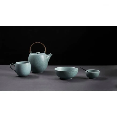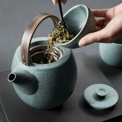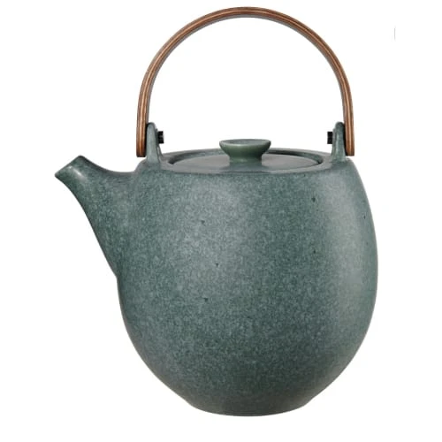 Cette théière de la collection Nesuto est magnifiquement conçue avec sa poignée en bois. Le choix du grès comme matériau de base pour cette théière permet de conserver la chaleur de l’eau plus longtemps la rendant idéale pour infuser des thés demandant une durée d’infusion plus longue tels que le puerh. Le grès étant une matière sans mémoire, neutre, il vous permettra également de profiter de tout vos thés dans la même théière sans mélange de saveurs. Faite à la main chaque théière est donc rendue unique et est empreinte de caractère et de personnalité. Dimensions : Diam 16.6 x 15.7 cm Matière : Grès Contenance : 2 L