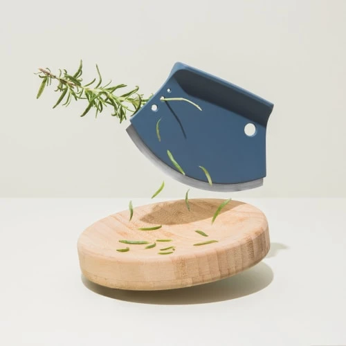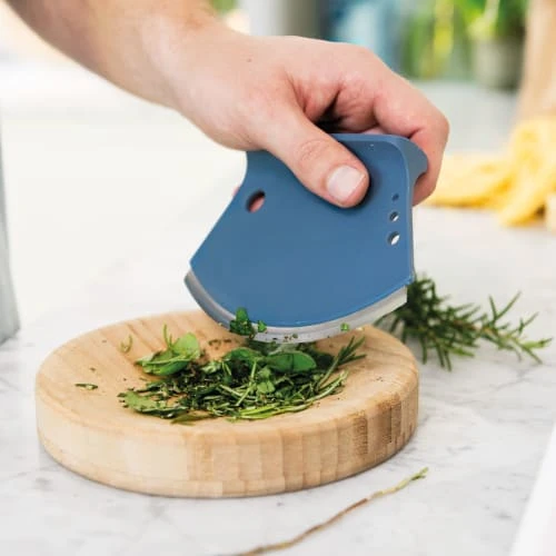 Ajoutez de la saveur Ă vos plats faits maison avec des herbes fraĂ®chement coupĂ©es! Hacher et Ă©mincer le persil, le basilic, la menthe… Avec le coupe-herbes Leo, c’est un rĂ©el plaisir de le faire grâce aux courbes harmonieuses de son couteau tranchant qui coupe en forme de demi-lune et grâce Ă son plat Ă hacher concave. Vous avez besoin de hacher du romarin ou du thym? InsĂ©rez simplement les herbes dans l’un des quatre trous prĂ©vus dans le coupe-herbe, poussez-les jusqu’au bout et hachez les feuilles qui tombent dans la planche Ă hacher. 1 x coupe herbes – 13,5x 2,5 x 9,5 cm