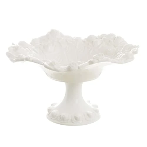 Blanc Mariclo Plat De Service Avec Roses En Céramique Blanche