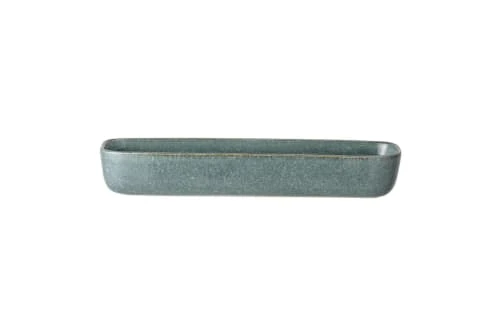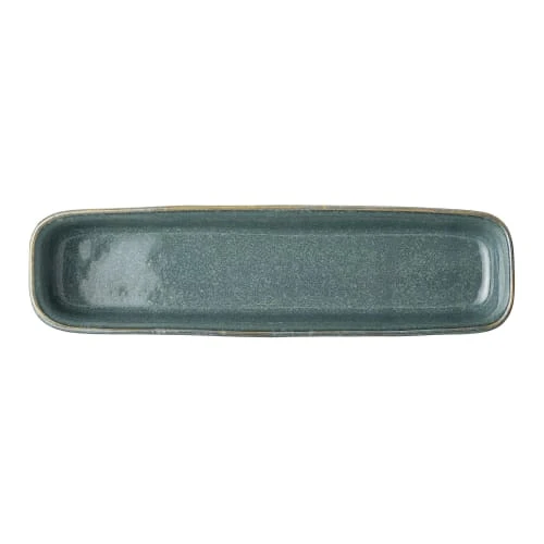 Très joli plat de service rectangulaire. Ce plat mesure 31cm sur 8,5cm avec une hauteur de 5cm. Il est en grès vert d’une joli teinte avec une patine craquelée d’un très bel effet qui lui confère un aspect ancien plutôt réussi.