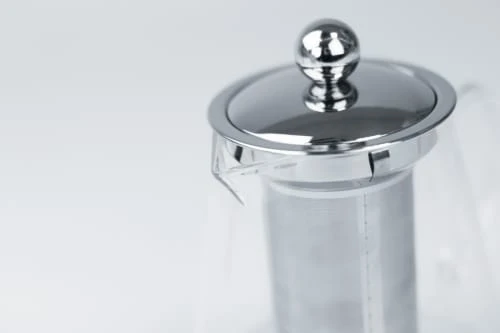 Théière en verre résistant borosilicate OOLONG par CRISTEL. Pratique et design. Disponible en deux capacités : 0,80l et 1,20l. – Couvercle inox brillant- Filtre amovible inox- Double paroi- Infuseur intégré- Filtre intégré- Verre borosilicate