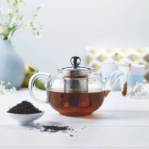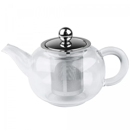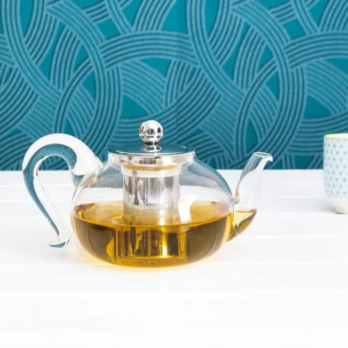 Théière en verre résistant borosilicate SAKURA par CRISTEL. Pratique et design. Disponible en deux capacités : 0,80L et 1,20L. – Couvercle inox brillant- Poignée inox brillant- Double paroi- Infuseur intégré- Filtre intégré- Verre borosilicate