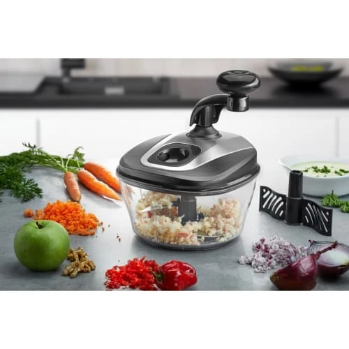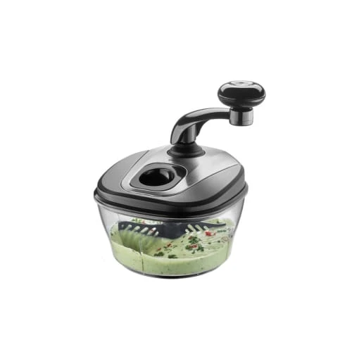 Les préparations chronophages en cuisine se réalisent désormais en un clin d’?il grâce à la manivelle turbo du SPINO. Il broie fruits et noix, noisettes etc. à la grosseur désirée, réduit les légumes en purée pour les sauces et mélange de délicieux dips. Idéal pour réaliser un guacamole, une salsa de tomates, des dés fins de légumes pour une omelette ou des fromages blancs aux fruits.- Accessoire de découpe avec trois lames courbées- Accessoirede mélange- Accessoirede séparation de jaune d’?uf- Changement facile des éléments- Anneau antidérapant- Manivelle amovible, peu encombrante et facile àranger- Capuchon de protection pour lames inclus- Volume de remplissage : 1.500 ml- Tous les composants sont lavables au lave-vaisselle sauf le couvercle avec manivelleGarantie : 5 ansMatière principale : Acier inoxydable de haute qualité