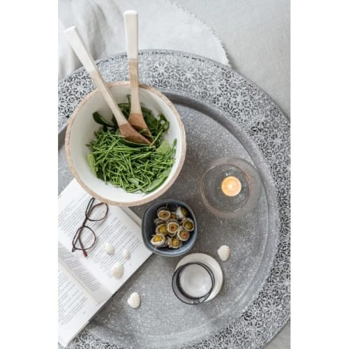 LANADECO Plateau 2 Niveaux Rond Bois De Paulownia Naturel H29,5cm