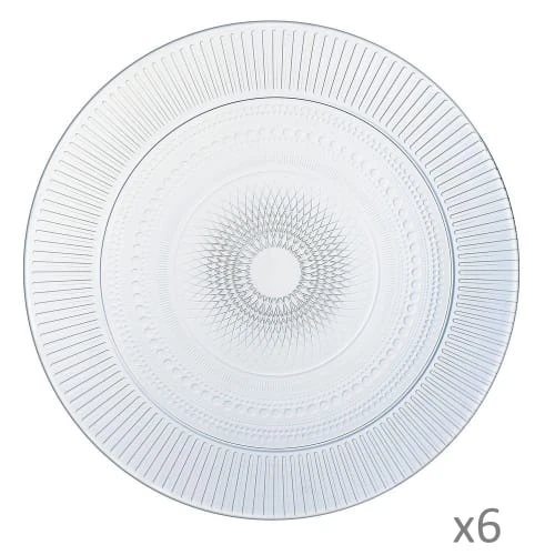 Ces assiettes en verre moulés aux motifs géométriques sont en verre ultra résistant.