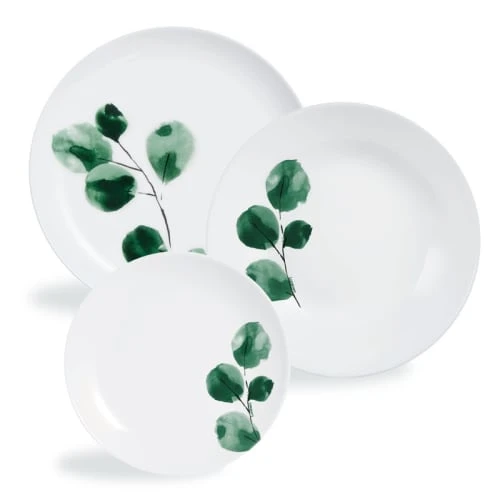 Découvrez la collection Eucalyptus de Luminarc. Fraiches et élégantes, ces assiettes inspirées par la nature sont conçues pour un usage quotidien intensif. Elles donneront un vent de fraicheur à toutes vos tables et supportent sans soucis les passages répétés au lave-vaisselle.