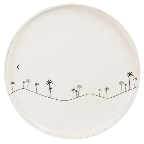 Maisons Du Monde Assiette Plate En Grès Beige Motifs Palmiers Noirs – Lot De 6
