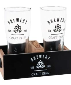 Maisons Du Monde Composition Verres à Bière (x2) Et Dessous De Verre En Bois D’eucalyptus