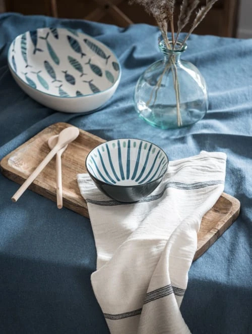 Maisons Du Monde Assiette Creuse En Grès Motifs Graphiques Bleu Gris, Verts Et Blancs – Lot De 2