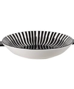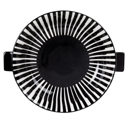 Maisons Du Monde Plat Rond En Grès Rayé Noir Et Blanc