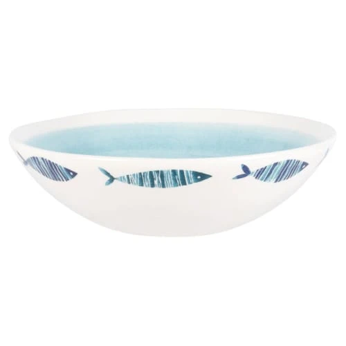 Maisons Du Monde Saladier En Faïence Blanche Et Bleue Imprimé Poissons