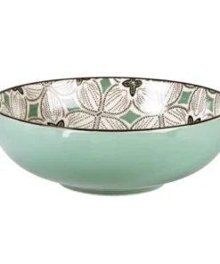 Maisons Du Monde Assiette Creuse En Grès Motifs Graphiques Bleu Gris, Verts Et Blancs – Lot De 2