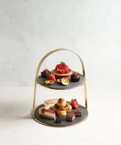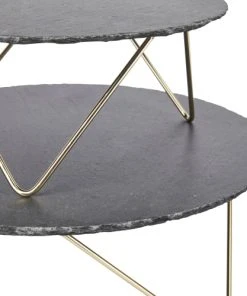 Artesa Plateau Rond à 2 Niveaux Fini Laiton Et En Ardoise Doré Noir