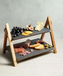 Artesa Support De Service 2 Niveaux Bois Et Ardoise Noir & Marron