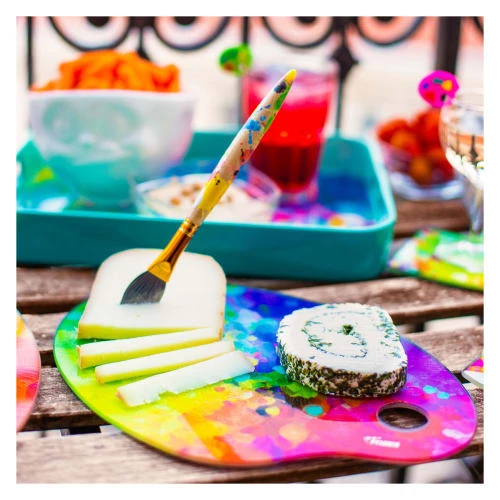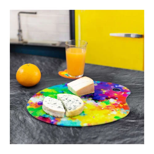 Un véritable chef-d’œuvre de beauté et d’utilité ! Cette planche sera idéale pour couper vos aliments (légumes, fruits, pain …) ou bien vous servir de plateau à fromage, accompagné de son couteau. Son verre trempé n’aura pas peur de la chaleur et sera parfait comme dessous de plat ! Utilisez-la également comme plateau apéritif, elle apportera une touche de couleurs à votre table.