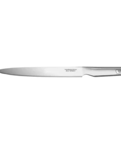Couteau filet de sole, lame flexible, de la gamme Asean. Lame 18cm en acier haute performance MoV – Molybdène Vanadium. Le dos de lame est arrondi, pour un confort de coupe optimal. Le fil de la lame est poli au cuir pour un tranchant rasoir. Couteau monobloc avec manche en acier inox 18/0. Nous recommandons d’essuyer le couteau après lavage – machine ou main – pour en prolonger indéfiniment l’usage.La collection Asean se décline sur 6 modèles d’inspiration japonaise. 100% acier, les couteaux de cuisine Asean ont une résistance à toute épreuve. Faciles à nettoyer, leur fluidité en fait des outils sains, antibactériens, adaptés à un usage quotidien.Les couteaux de Chef Sabatier Trompette ont été développés pour répondre aux exigences spécifiques de la préparation culinaire. Les lames des couteaux sont en acier inoxydable Molybdène vanadium de grande qualité avec un pourcentage élevé de carbone. Ces aciers confèrent aux produits leurs qualités de résistance, dureté, inoxydabilité, anti-corrosion et tranchant.