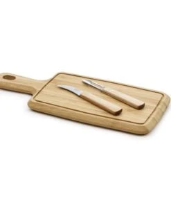 Planche à découper, Eplucheur et Couteau Fruits & Légumes de la gamme Essentiel. Cet ensemble 3 pièces vous permettra de couper et éplucher avec efficacité vos fruits et légumes. Il est composé : d’une planche à découper en bambou, d’un éplucheur et d’un couteau à fruits et légumes. Le dos de lame est arrondi, pour un confort de coupe optimal. Le fil de la lame est poli au cuir pour un tranchant rasoir. La mitre, les rivets et la soie sont en acier inox 18/0.La collection Essentiel est une gamme authentique et naturelle dont le manche est façonné en bois de pakka. Le bois est enrichi de résine antibactérienne. Le dessin traditionnel de la gamme, avec 3 rivets et une mitre en inox, répond aux usages culinaires exigeants : performance et précision de coupe, confort en main pour un geste maîtrisé, robustesse et facilité d’entretien. Nous recommandons d’essuyer le couteau après lavage – machine ou main – pour en prolonger indéfiniment l’usage.Les couteaux de Chef Sabatier Trompette ont été développés pour répondre aux exigences spécifiques de la préparation culinaire. Les lames des couteaux sont en acier inoxydable Molybdène vanadium de grande qualité avec un pourcentage élevé de carbone. Ces aciers confèrent aux produits leurs qualités de résistance, dureté, inoxydabilité, anti-corrosion et tranchant.