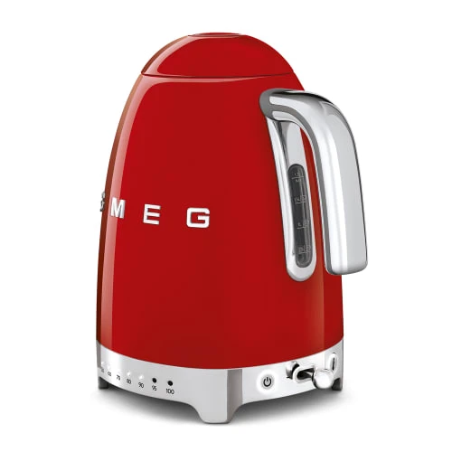 Une bouilloire qui rend chaque moment spécial !base avec connexion à 360°base avec pieds antidérapants comprenant un raccordement électrique et un système de sécurité qui, en l’absence d’eau, interrompt le fonctionnement de l’appareil.ouverture progressivecouvercle à ouverture progressive qui empêche l’évacuation soudaine de la vapeur chaude.filtre anti-calcairefiltre en acier inoxydable amovible et lavable qui retient le calcaire naturellement présent dans l’eau et qui se dépose au fil du temps.7 niveaux de tempÉratureles différents mélanges de thé nécessitent des températures différentes, et la bouilloire à température réglable vous permet de choisir parmi 7 niveaux de température entre 50°c et 100°c pour personnaliser la température de l’eau en fonction du thé sélectionné. fonction maintien au chaudune fonction qui permet de maintenir l’eau à la température choisie pendant 20 minutes.Collection : Années 50 Matière : Inox Couleur : Rouge Longueur : 22.6 cm Largeur : 17.1 cm Hauteur : 27.5 cm Capacité : 170 cl