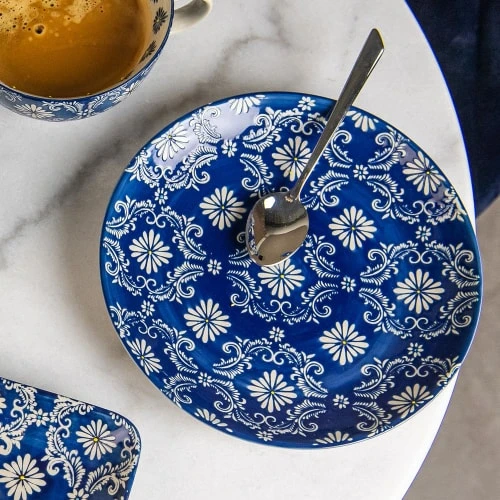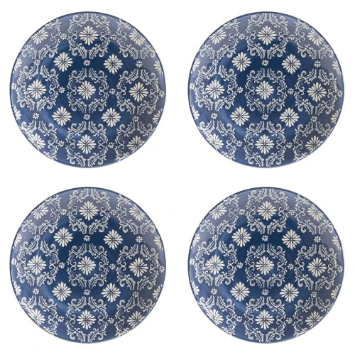 Table Passion Coffret De 4 Assiettes à Dessert 20 Cm En Grès Bleu