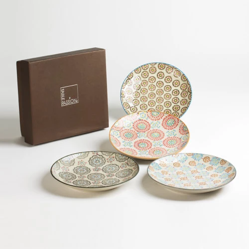 Table Passion Coffret De 4 Assiettes à Dessert 20 Cm En Grès Multicolore