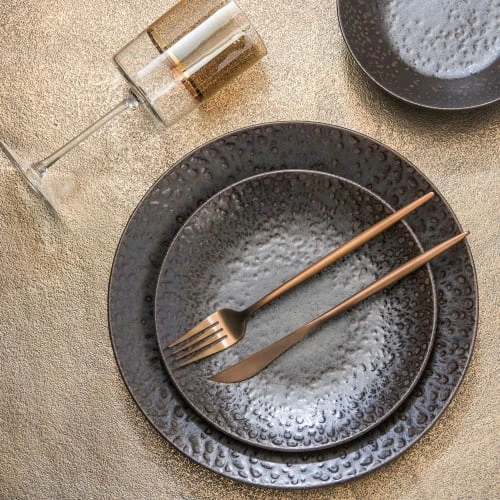 Adoptez une décoration de table unique avec les assiettes à dessert de la gamme basalte ! le marron rehaussé de tons chauds mettra en valeur vos créations culinaires et apportera de la profondeur à votre table. la surface texturée apportera du relief à l’ensemble et sera la touche originale qui fait la différence. inspirée de la roche volcanique, la gamme basalte sera idéale pour une ambiance à la fois minérale et chaleureuse ! fabriquée au portugal, la méthode de confection est artisanale ce qui rend chaque pièce unique. (lot de 6)Collection : Basalte Matière : Faïence Couleur : Marron Diamètre : 21 cmCompatible Lave-vaisselle Compatible Micro-onde