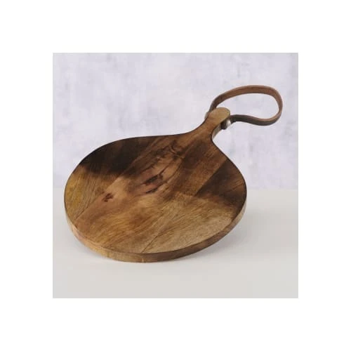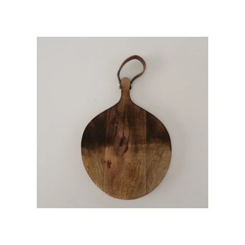Wadiga Planche à Découper Ronde En Bois De Manguier Et Anse Cuir